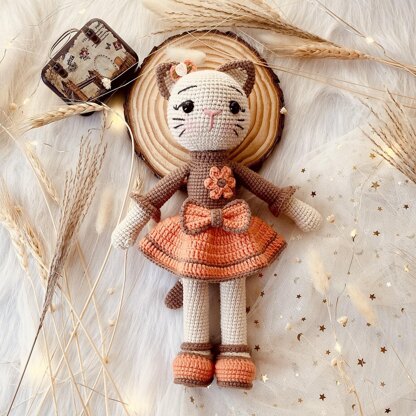 This amigurumi crochet pattern “Fizi Cat” contains detailed written instructions and photos tutorial to help you making a cute cat doll with outfit removable.