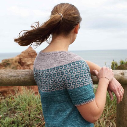The sweater is knitted seamlessly from the top down, this allows you to try your sweater on as you work and check the fit, as all bodies are different! Short rows are added to shape the neckline and back. The yoke is a slipped stitch pattern not stranded colourwork. The sleeves and body are separated and worked in the round. The sleeves are designed to be either short or full length, but you can make your sleeves any length.