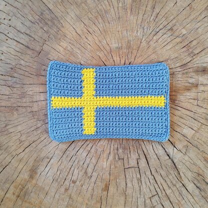 Easy crochet pattern of Swedish flag, with chart. PDF pattern with clear instructions to make this flag and use as mug rug, applique on bag/rucksack or to make a bunting. You can make it if you know single crochet stitch, crocheting in rows and changing colors (Fair Isle technique). Finished size: 16x11cm/6x4.5” If you use sport weight cotton yarn, you will need approx 20g/0.7oz in total to make double layered flag, most of it blue. If you plan to use up your scraps, use your kitchen scale to make sure you have enough yarn.