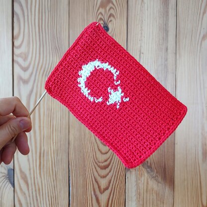 Easy crochet pattern of Turkish flag, with chart. PDF pattern with clear instructions to make this flag and use as mug rug, applique on bag/rucksack or to make a bunting. You can make it if you know single crochet stitch, crocheting in rows and changing colors - Fair Isle technique. Finished size: 16x11cm/6x4.5” If you use sport weight cotton yarn, you will need approx 20g/0.7oz in total to make double layered flag, most of it red. If you plan to use up your scraps, use your kitchen scale to make sure you have enough yarn.