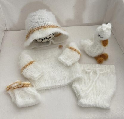 Fits both newborn and 20-21 inch reborn size knit with crocheted swan set pattern THIS IS NOT THE FINISHED ITEMS