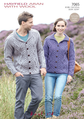 Flat Collar & Shawl Collar Cardigans in Hayfield Aran with Wool - 7065 - Downloadable PDF