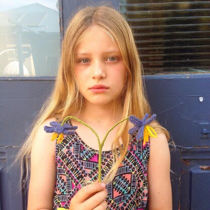 Flowers use a small amount of green, purple/blue and yellow DK weight yarn.