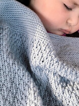 Fleece Peace is an elegant and modern baby blanket. This blanket is a perfect project for an advanced beginner to intermediate knitter. The blanket uses three different textured stitches; garter, seersucker (a repeated diamond shape), and a broken rib. The boarder and body are worked together on circular needles.