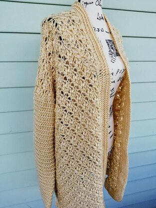 You can shorten it by omitting some rows for a cropped cardigan or, conversely, you can lengthen it by adding additional rows to create a duster style garment.
