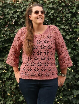 /PATTERN DETAILS • XS to 5XL (refer to details below) • Easy level • Made out of 4 rectangles. Only the front panel has a little shaping for the rounded neck • Works up very quickly thanks to the lace • Comes with written instructions and a chart for the flower lace pattern • Techniques used / Special stitches: Full explanations in the pattern. • US crochet notations