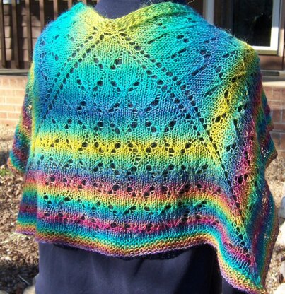 With an easy to memorize lace pattern (repeat of 8sts x 8rows), this shawl is a great first knitted-lace project. Worked top down, the “birds” increase as the shawl grows, ending with a garter-stitch band.