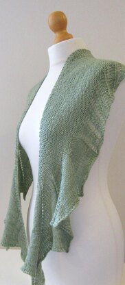 A reversible crescent shaped top-down shawl, which uses short rows to create a broad yet shallow shape. The subtle lace decoration evokes the shape and form of bird’s wings.