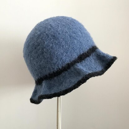 The felted Flirtation Hat is a delightful addition to a fashionista’s wardrobe. Its coquettish and coy style is appealing and nods to your femininity. The hat can be knit in a solid color or with a contrasting brim edge and band. Use your imagination to decorate with flowers, beads or bows.