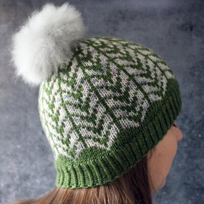 The pattern is fully written with a chart for the colourwork pattern and also includes a photo tutorial for a super stretchy cast-on called the Estonian Cast-On for the brim of the hat. The pattern has been tech edited and test knitted. There’s a screenshot of the pattern, and a list of the stitches used at the bottom of the photos.