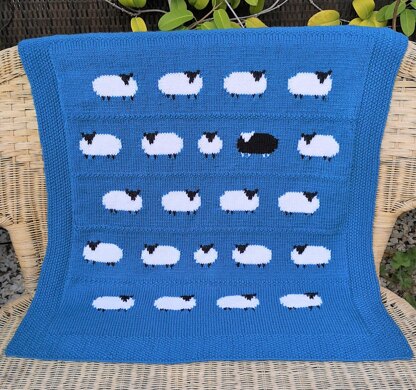 Easy to knit in stocking stitch and there are large coloured intarsia charts to follow for the sheep. A moss stitch border around the blanket is knitted as you go along and this avoids the edges curling.