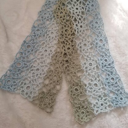 Lace motif scarf built from using very simple flower motif style. The perfect lace accessory to compliment any spring and summer outfit.