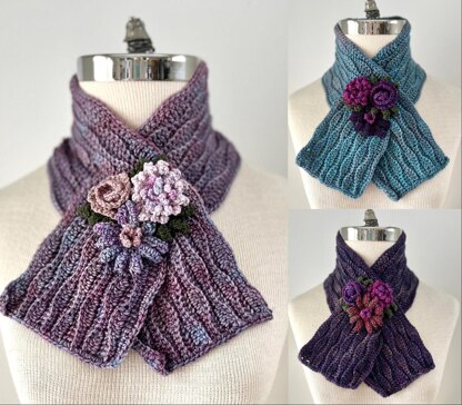 The Floral Reversible Scarf crochet pattern can be worn with 2 different textural designs on either side of the scarf as well as with or without the floral brooch. The texture and style adds a contemporary classic feel to the design. The beautiful floral brooch is the perfect accent for this scarf or other items in your wardrobe. Make several different brooches in various colours to change the look of your scarf. A reversible design that can be worn multiple ways for a different look. A very versatile design to warm you on the cooler days and accent your wardrobe with style.