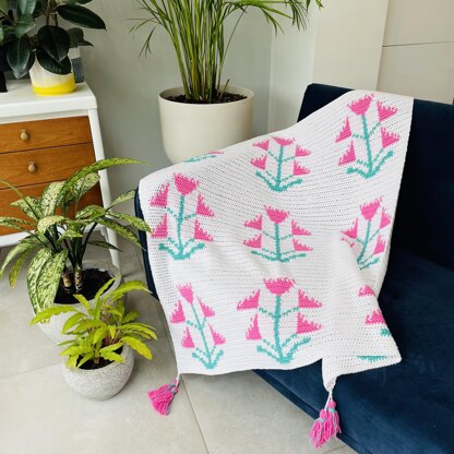 Inspired by Wonderland tea parties, this whimsical blanket is fresh and playful with its bold flower motifs.