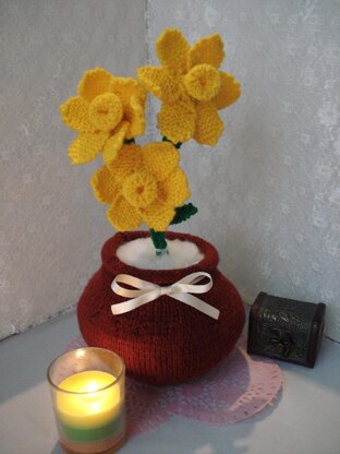 This is a pattern for a beautiful hand knitted Flower and Vase.