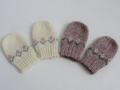 Simple stitch pattern, knitted in the round, makes these fun to work up with a minimum of fuss.