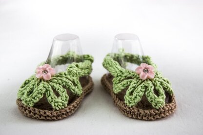 This is a pattern for an adorable pair of knit summer flower sandals Treat the special little girl in your life to a pair of super cute cotton summer sandals! So easy to knit, quicker than booties for sure. They feature a garter stitch sole and a beautiful petal toe topped with either a knit flower or button. Use any colour combination you like or make them in one colour. Great for using up remnant bits!