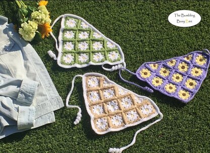 The crochet Granny Square Flower Bandana pattern is in a PDF file.