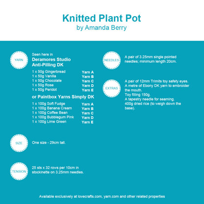 Flower in a Pot in Deramores Studio DK or Paintbox Yarn Simply DK - Downloadable PDF is a knitting pattern by Amanda Berry available as a Downloadable PDF, and includes instructions in English. Super fun to make, this pattern could be your next masterpiece!