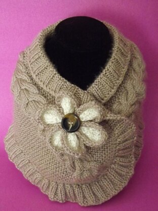 Keep warm this winter with this hand-knit neck warmer (shown above in Little Mouse). Featuring simple cables and a flower pin to keep it closed, this is the perfect piece to tuck under your coat and keep you warm! And now you can make it yourself!
