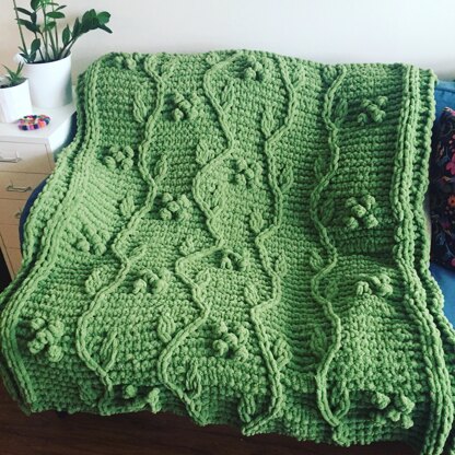 THIS IS A LOOP YARN FINGER-KNITTING PATTERN. The Flowered Vines Blanket pattern is a repeating pattern of vines, leaves and 'bobble' flowers. NOTE: While this pattern is written for Red Heart Loop-It yarn, UK knitters can substitute Lion Brand Off The Hook Yarn for a blanket of approximately the same size.