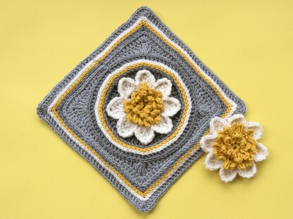 Flowers In The Rain is a lovely afghan block measuring 9½ inches x 9½ inches (24cm x 24cm).