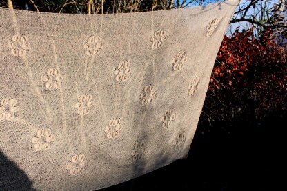 Flowers in the sand is a very fine cobweb shawl/stole.