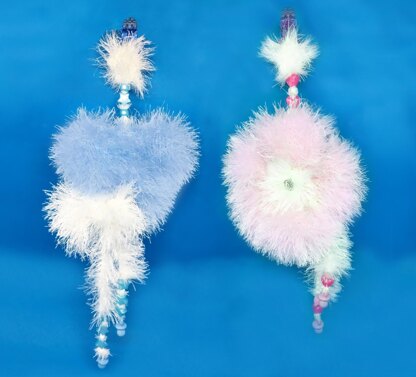 Here are 2 patterns for the fluffiest, cutest pram charms. Very easy to knit with King Cole Chunky Tinsel yarn on 3.25mm straight needles.