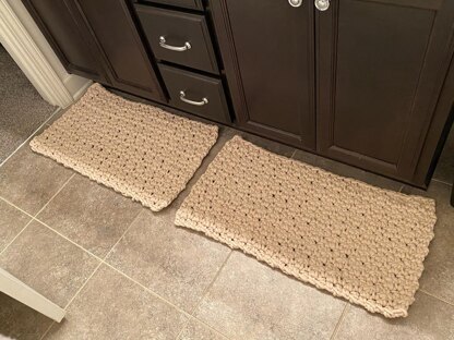 This is a simple, cozy bathroom rug crochet pattern to create rugs for in front of your bathroom vanity or outside the tub or shower.