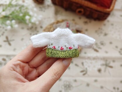 Create adorable and enchanting outfits for your favorite tiny toys and dolls with my Fly Agarics Cardigan KNITTING PATTERN. This tutorial is perfect for dressing up Little Sister Maileg Mouse, Sylvanian Families Adult figure, or other similar-sized toys with waist approx. 8 cm / 3.14’’, sweater length is 3.5 cm / 1.18’’, sleeve length is 1.5 cm / 0.39’’.
