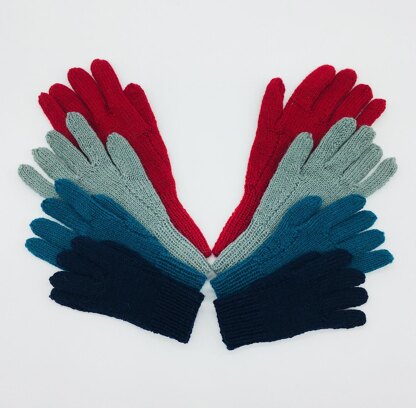 These gloves are knitted in 4-ply (fingering) yarn. This is a great knitting pattern for the first pair of gloves you ever knit. It is a straightforward pattern, knitted flat, on a pair of single-pointed knitting needles.