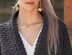 Notes: The cropped cardigan is knitted in one piece from the bottom of the back, adding sleeves and then separating at the front, continuing to the bottom of the fronts. The scarf collar is knitted separately and sewn in place.