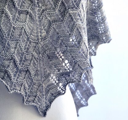 Forbidden Cliffs is a striking yet simple lace shawl that can be made in various yarn weights. The size is adjustable based on how many times the lace chart is worked.