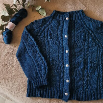 Meet the "Forest Berries," a cardigan that's as intricate as the forest it's inspired by. This pattern is a love letter to nature, featuring bobbles that resemble ripe berries, leaf motifs that capture the forest's lush greenery, and lace patterns that echo the spiny branches of a blackberry bush. Knit in one piece from the top down with a raglan construction and a double knit button band.