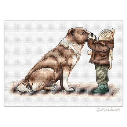 Forever Friends Counted Cross Stitch Pattern and PDF Digital Download. A heartwarming counted cross stitch pattern featuring a child and his handsome dog best friend going for a walk. Perfect nursery decor style needlework.Stitched on Aida 14ct: 19 x 12 cm (8 x 5 in)DMC Threads: 17 solid colours (2 blends)Used stitches: full cross stitch, half cross-stitch, backstitchSkill level: Beginner / IntermediateStitch time: 35-50hCross stitch pattern in PDF, Instant Digital Download includes: 1) cover page with preview; 2) instructions, symbols key and shopping list (DMC thread colour numbers and estimates, as well as fabric options); 3) two black and white charts, with and without backstitch; 4) two colour charts, with and without backstitch; 5) single-page file for Pattern Keeper (available on request).Please note: This pattern is for personal use only - not for commercial use. You can't make copies of our charts to distribute (either as PDF or printed versions) but you can definitely sell your finished cross stitch work.