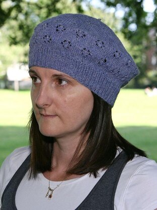 This Forget-Me-Not Beret is based on my Forget-Me-Not Shawl pattern. It uses the same yarn and they share a common pattern repeat.