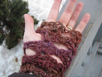 This is an easy pair of fingerless gloves, made in the round seamlessly but turned after each round. There is no gusset or thumb shaping, making these a great advanced beginner project! Two sizes are available, and the length is easy to customize. The gloves are also stretchy, which helps them to fit a wider variety of people.