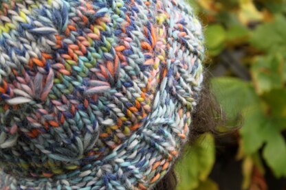 The Forgotten Dreams Hat is a quick and easy hat knit up in a bulky variegated single yarn. I find that colorful yarns tend to obscure most complex stitches, but I’m always drawn to colorful yarns because they’re just so pretty. I wanted a hat to show off the colors of a variegated yarn in a stitch pattern that would complement the variegation, and from there the forgotten dreams hat was born. The daisy stitch on the hat makes it more interesting than simple stockinette stitch, and yet it isn’t so overwhelmed by the colors that you can’t clearly see the stitch.