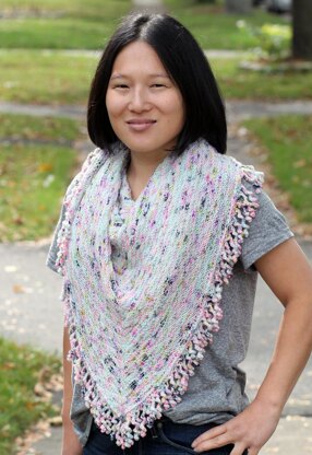 Fortune Teller Shawl is a triangle shawl that features a reversible textured stitch that is patterned on both the right and wrong sides. The applied edging is a beaded corkscrew fringe that adds a fun modern touch. The design looks equally good in a solid color or in a speckled yarn as shown. The pattern includes four sizes and has both written and charted instructions, plus a link to a video tutorial for working the edging. This pattern was tech-edited by Jean Clement (desertroseknits) and test-knit.