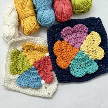 Four Hearts Granny Square Crochet PDF PATTERN by Tania Skalozub