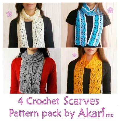 Four Lacy long scarves crochet patterns. Learn how to make these beautiful crochet lace scarves.