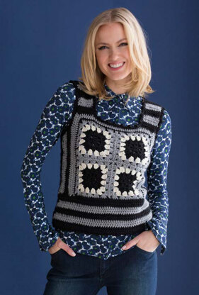 Four Square Retro Vest in Red Heart Soft and Multis - LW4774 - Downloadable PDF
