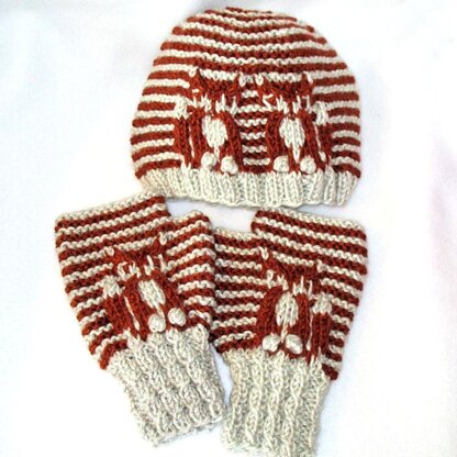 “Foxes Love Stripes”: matching Hats and Mitts for All Sizes!