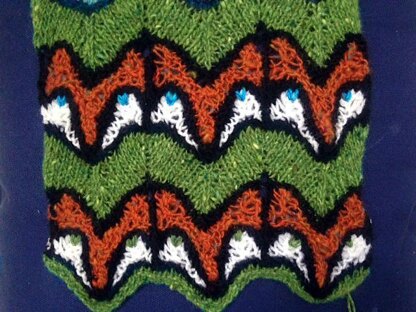 This fox pattern is It's based on stacked stitches technique, and worked in stripes of a single color; there is no stranding at all. Compared to other stacked patterns this one is simple. You can find my other stacked patterns in this bundle: http://www.ravelry.com/bundles/scarves--wraps-19 And, lots of foxes are here:http://www.ravelry.com/bundles/foxes