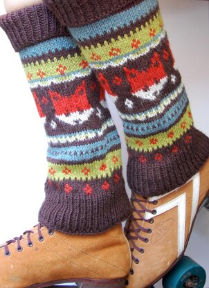 This is a pattern for a pair of Foxy leg warmers worked from the top down and in the round and using the stranded knitting technique.