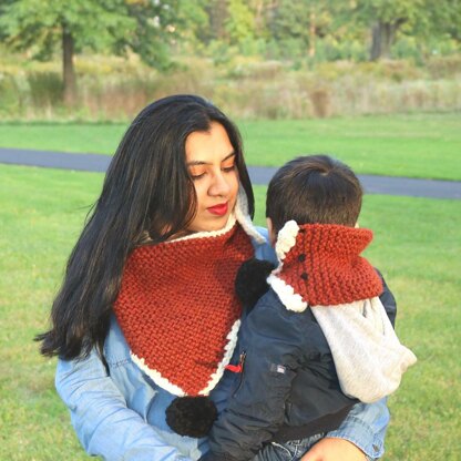 This pattern is for a fun and cute knitted fox-themed scarf and cowl mommy and me set. This set was inspired by my need to match with my mini while still looking like an adult! The pieces are worked up as an adult triangle scarf and a toddler cowl with a simple crochet border and finished off with a pom. There are photos included of the crochet border for ease. This set is worked up just in a few hours and makes for a great gift or addition to your market inventory or store.