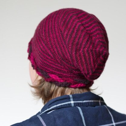 The hat is made with slip stitches, featuring horizontal cables, a technique I invented.