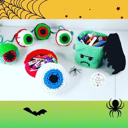 This is my crochet Halloween bundle; my Frank treat box, eyeball treat basket and eyeball garland - the prefect Halloween decor! This pattern is written in ENGLISH only and uses US crochet terminology.
