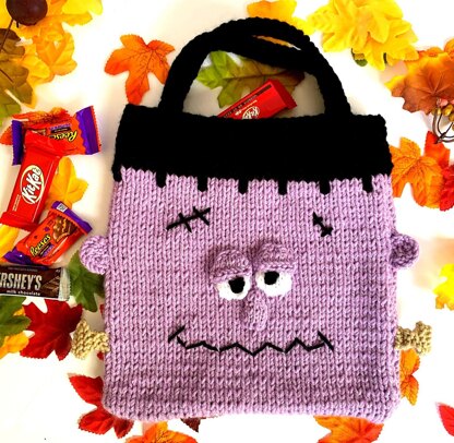 A really cute bag for kids to take “trick or Treating”! Or, make one for the little “monster” in your life, or anyone that you need a silly gift for. This knits up quickly, in about 2 days or less, you can have it completed and ready to give to someone. All the kids will want one of these, as well as a few teens and adults that want something as a conversation piece! Uses Worsted weight yarns, knitting needles US # 10 and # 7