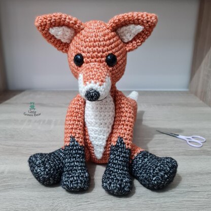 Fraser is an adorable, cheeky, little fox who spends his days roaming around the fields and woodland, enjoying the peace and occasional sunshine. He sits just under 9 inches tall (when made with recommended materials).